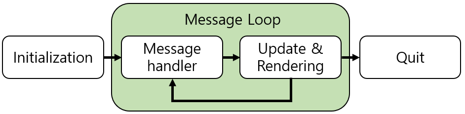 - Message processing : occurs in the specified callback function when creating the application window.
