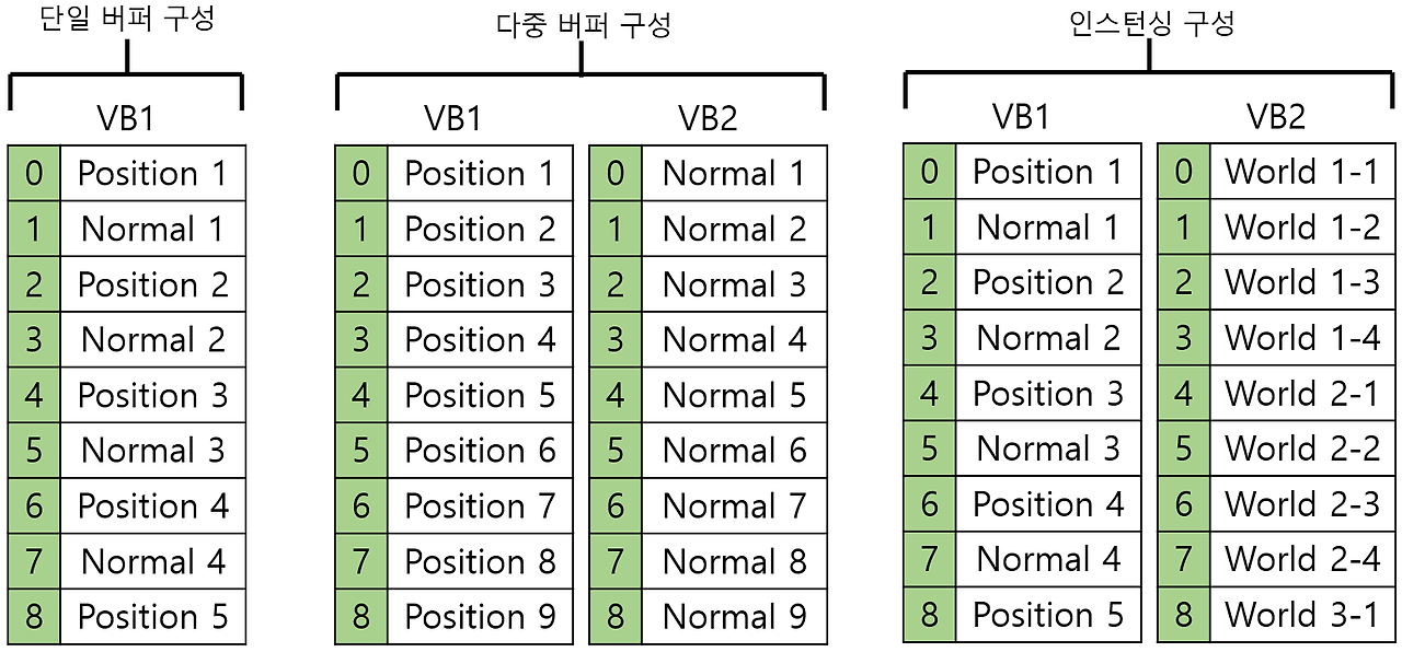 - Vertex data can be divided into multiple buffers.