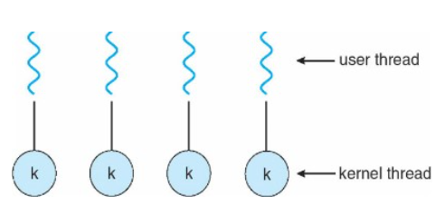 - One-to-One (kernel-level threads; KLTs)