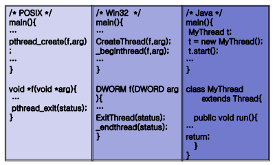 - Linux / Unix : POSIX Pthreads